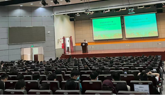 詹若挺院长首先为同学们开展实验室安全教育专题讲座,随后对毕业实习工作作总体部署。学院党政办公室段聪老师详细介绍毕业实习的整体安排。她强调,学院将落实《教育部关于加强和规范普通本科高校实习管理工作的意见》,逐步深化毕业实习改革,并介绍了改革后的实习目标、实习要求、实习内容及注意事项等。龙泳伶副院长对同学们进行实习动员。她强调,毕业实习是人才培养的重要组成部分,是深化课堂教学的重要环节,是学生了解社会、接触生产实际的重要途径,请同学们高度重视。2022届本科生毕业实习以“集中实习+分散实习”、“生产实践+专题研究”相结合的方式开展,请同学们按实习计划开展实践,确保本科毕业实习有序、高质开展。最后,陈其煌副书记进行实习安全与纪律教育,按照学校疫情防控的最新部署,强调安全第一,保障质量,预祝同学们顺利完成实习任务。