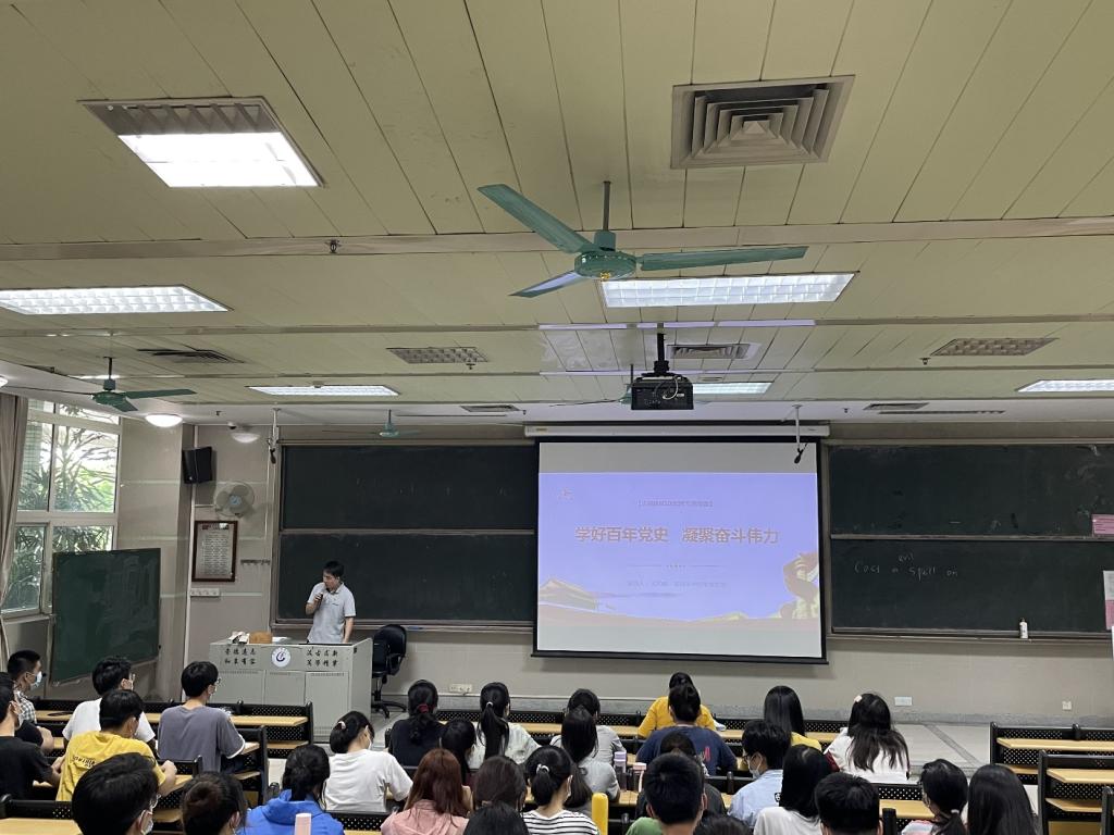 接下来,支部书记田艺峰同志为全体党员同志讲述了主题为“学好百年党史,凝聚奋斗伟力”的专题党课。他从党史学习意义及重要性、中国共产党百年党史发展脉络及党史学习的重要启示三个方面展开讲解,并向同志们分享了自己在党史学习过程中的诸多感悟。