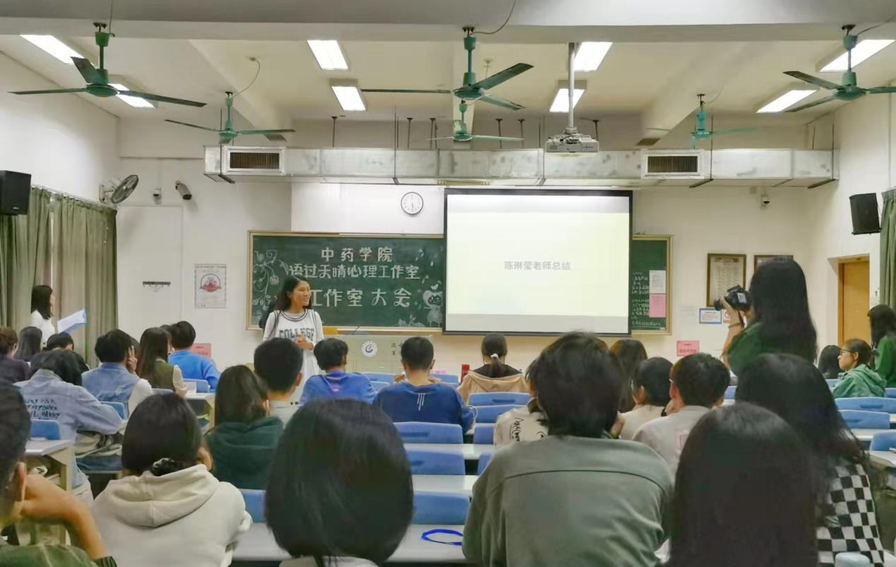 最后,大会以陈琳莹老师总结致辞结束。作为心理辅导站的“大家长”陈老师幽默风趣提出心理委员”。三“心”是对同学们怀有爱心,对待同学们的问题要有耐心以及日常观察同学异常的细心。二“意”是要有不忘初心牢记使命的和做好心委工作的“艺”术,同时,陈老师还对本次工作室大会提出改进建议。
